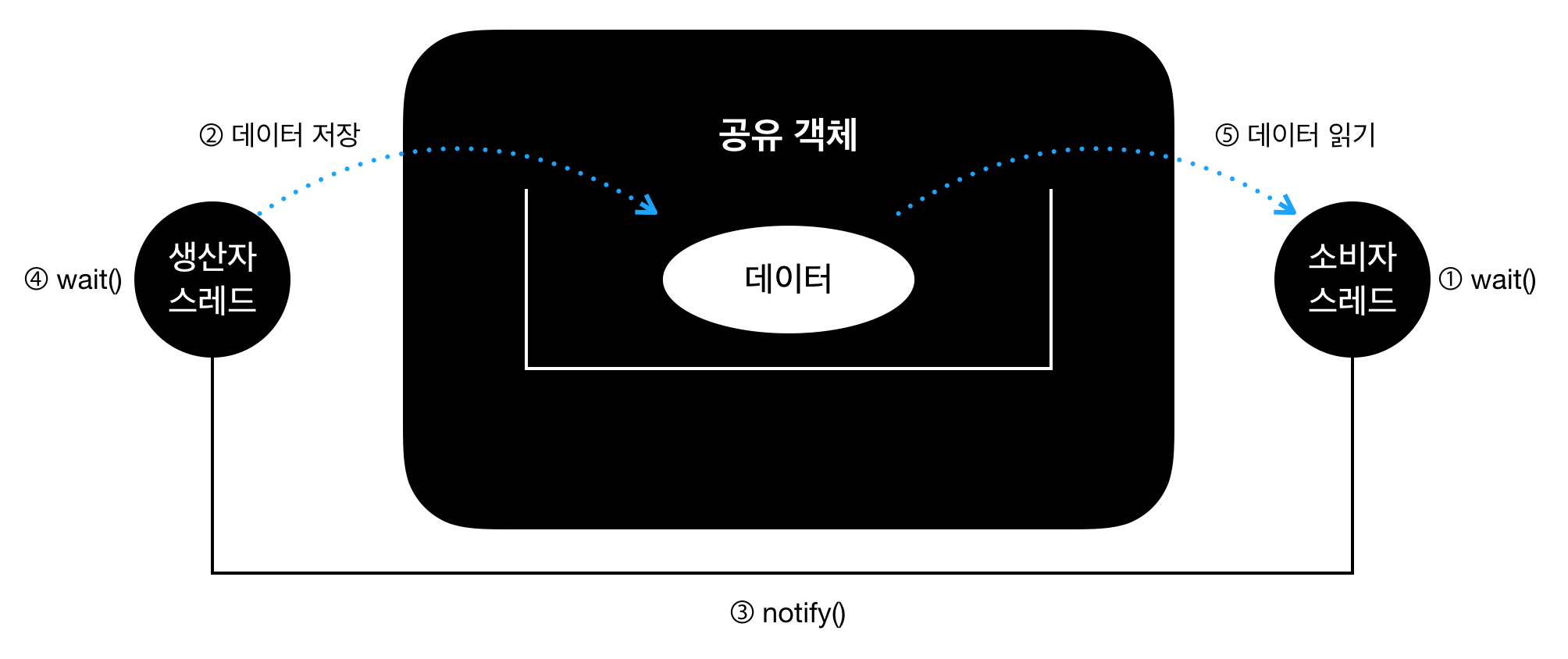 - 데이터를 저장하는 스레드(생산자 스레드)가 데이터를 저장(생산)합니다.
