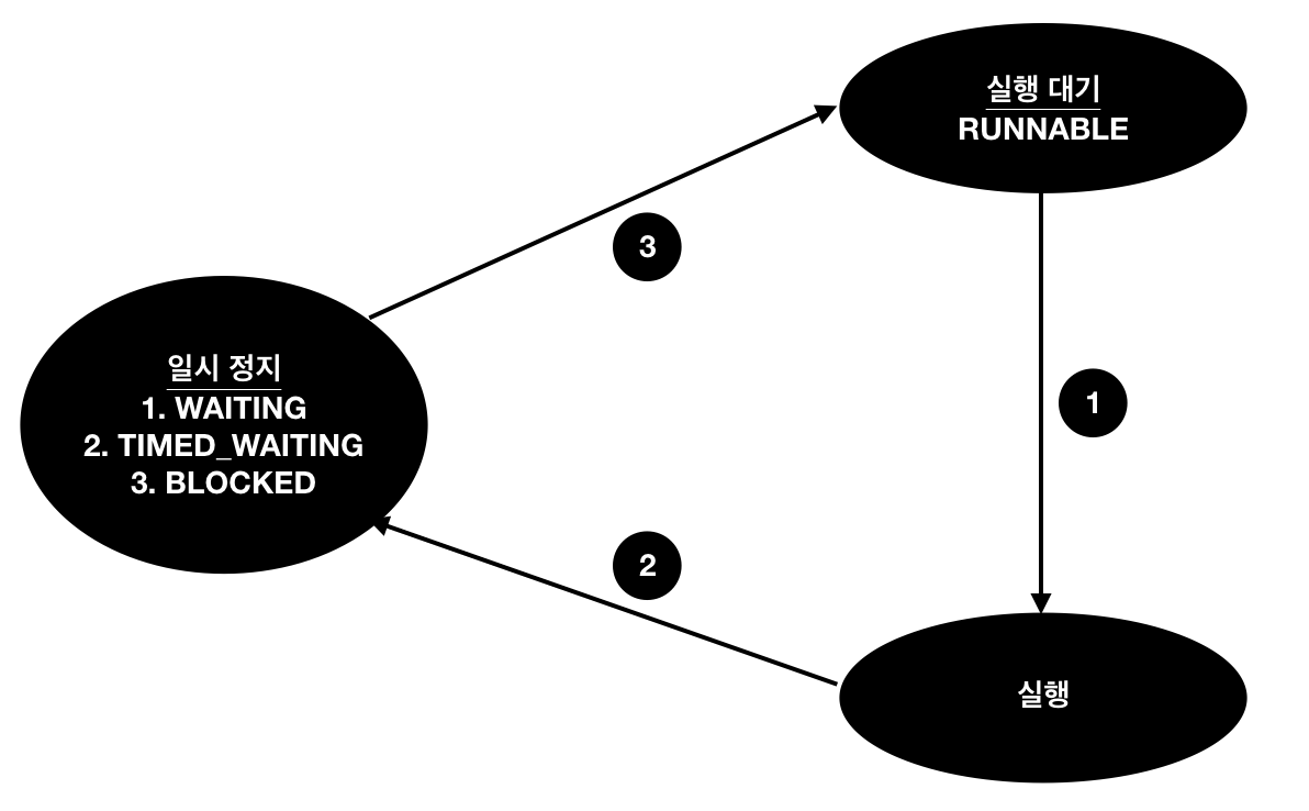 · 스레드가 다시 실행 상태로 가기 위해서는 일시 정지 상태에서 실행 대기 상태로 가야합니다.